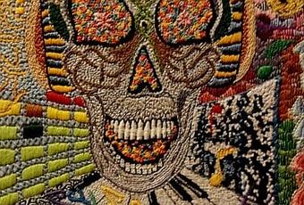 Examples of Owen Kelly’s artwork: embroidered quilt