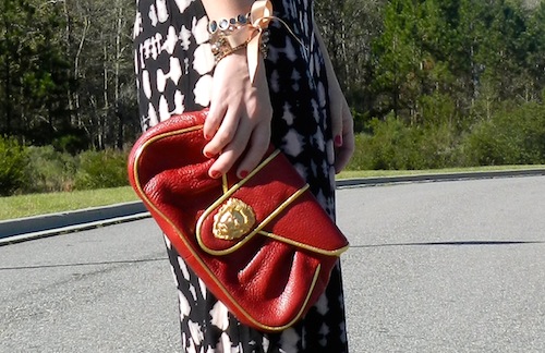 Hint: When picking new pieces for your wardrobe, pick colors that can easily be translated to other outfits. When wanting a pop of color, try a cherry red clutch like I'm wearing and pick a style that can easily be dressed up or down.