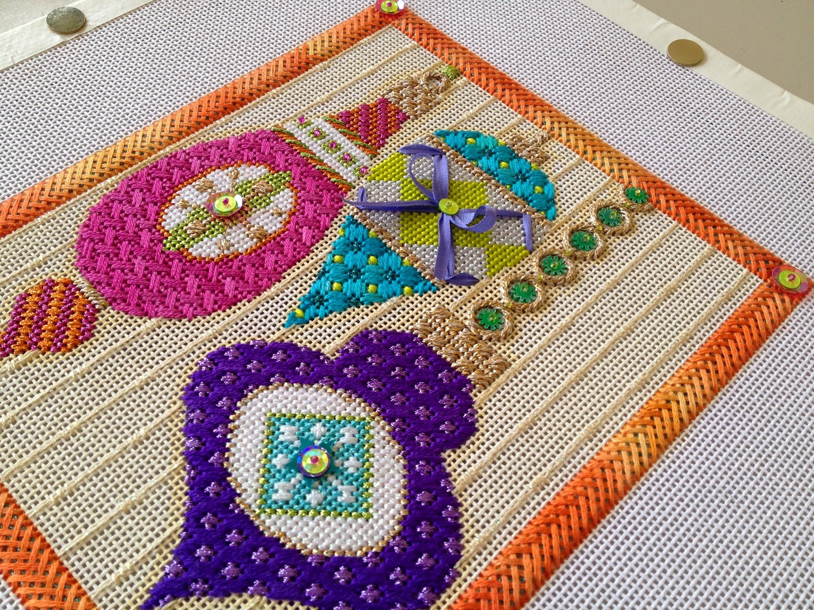 Here's a look at the canvases in the Contemporary colors and the Traditional red & green:
