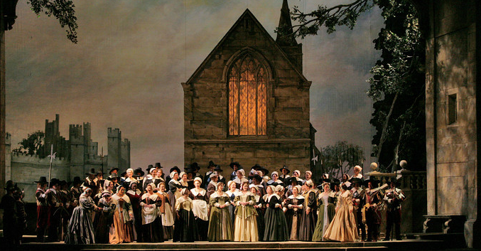 We gather together: the Puritans take the stage for a big chorus in I Puritani.