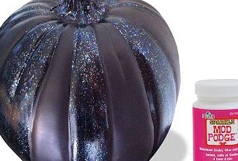 My friends at Michaels are letting me experiment with a new black craft pumpkin for sale this holiday season. It’s about 10" tall and kind of foam-like so there are lots of pinning options, but I’m going to try a few different paint approaches. I’ll probably end up with a grand ode to Jackson Pollock, but for today I just tried adding a little sparkle on alternate panels with this new glitter Mod Podge. It seems to look great on anything black. Simple and stylish and fun.