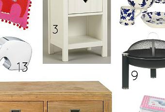 All these items are on their website - I can't be bothered to link them all, but they should be pretty easy to find.1. The flat is tiny so we're going to be needing lots of storage boxes/solutions like this2. You may know that I have a slight (read: huge) obsession with elephants. This is from their kids section but look how cute it is!3. Again from the kids section (doh!) but would be a perfect bedside table. If a little short!4. Emma Bridgewater set - if you look closely you'll see the blue smudges are actually little pictures of Great Britain, love!5. Cute door mat - an essential6. Not sure where I will be able to do my make-up, so will be dotting mirrors around the flat so I can find the perfect spot7. How lush is this electric mixer?! Its something ridiculous like £500 so completely fantasy, but amazing nonetheless!8. Can never have too many cake tins, especially when they have chickens on9. We don't even have a garden, but if we need I would be craving this 'fire pit' even more! Perfect for post bbq evenings in the garden!10. The great coffee table debate. So the boy and I have realised not only do we have very different taste in furniture, but we also completely disagree on whether there is room for a coffee table. As well as two side tables either side of the sofa, and a little dining table. The flat is tiny. I say no, boy says yes. We shall see...11. Tea is so much better from a teapot! Maybe not a £56 Emma Bridgewater teapot, but still!12. Loving this throw - will be the perfect way to inject some color into our living room. 13. And last, but by no means least, who doesn't need an elephant shaped bottle opener? The obsession lives on.