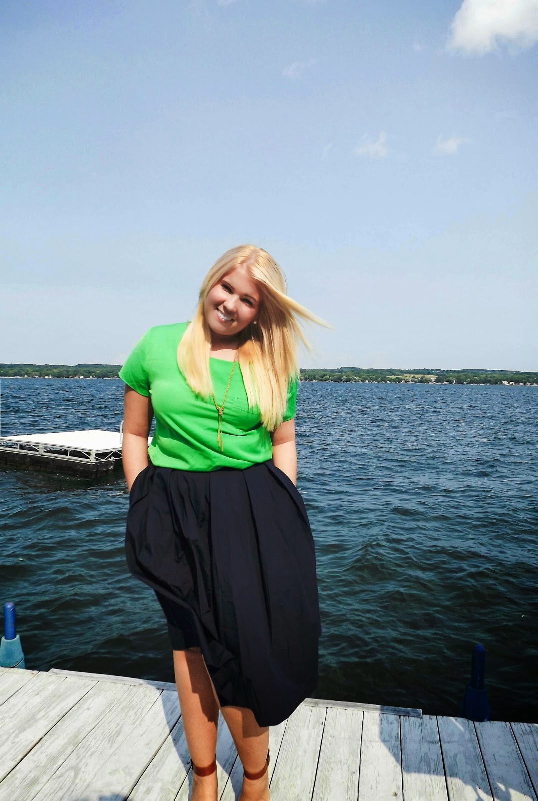 Outfit: Top- J.Crew, Skirt- eShakti, Sandals- Cato Fashions, Necklace- Madewell, Bracelet- The Farm Basket With the return of fall, a dramatic new haircut is necessary. Let's be honest. I tried the middle part right after I got it done, loved it for a hot second, and then decided to part it back to the side as it rightfully should be. School is less than a week away, my schedule is AWESOME, and life is absolutely looking up. Y'all have followed along on this roller coaster ride of a year and have been amazing. But let's look forward to this next year being THE BEST yet! Y'all with me? For the last day on the lake and the day I just happened to get my hair done, it was back up in the 80's and absolute heaven. This midi skirt and vibrant top made the perfect look for an evening with my family, enjoying the company of those I love so entirely much. How have you spent the last few days of summer? xoBCC