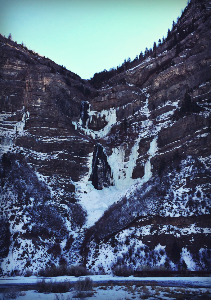 We stopped to admire the frozen Bridal Veil Falls on our way in. Because of avalanche danger, this is as close as we could get, but it was stunning.