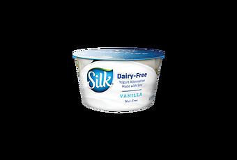 I just got finished eating four cups of dairy- free Silk alternative vanilla yogurt a few hours ago earlier this morning after I got home.