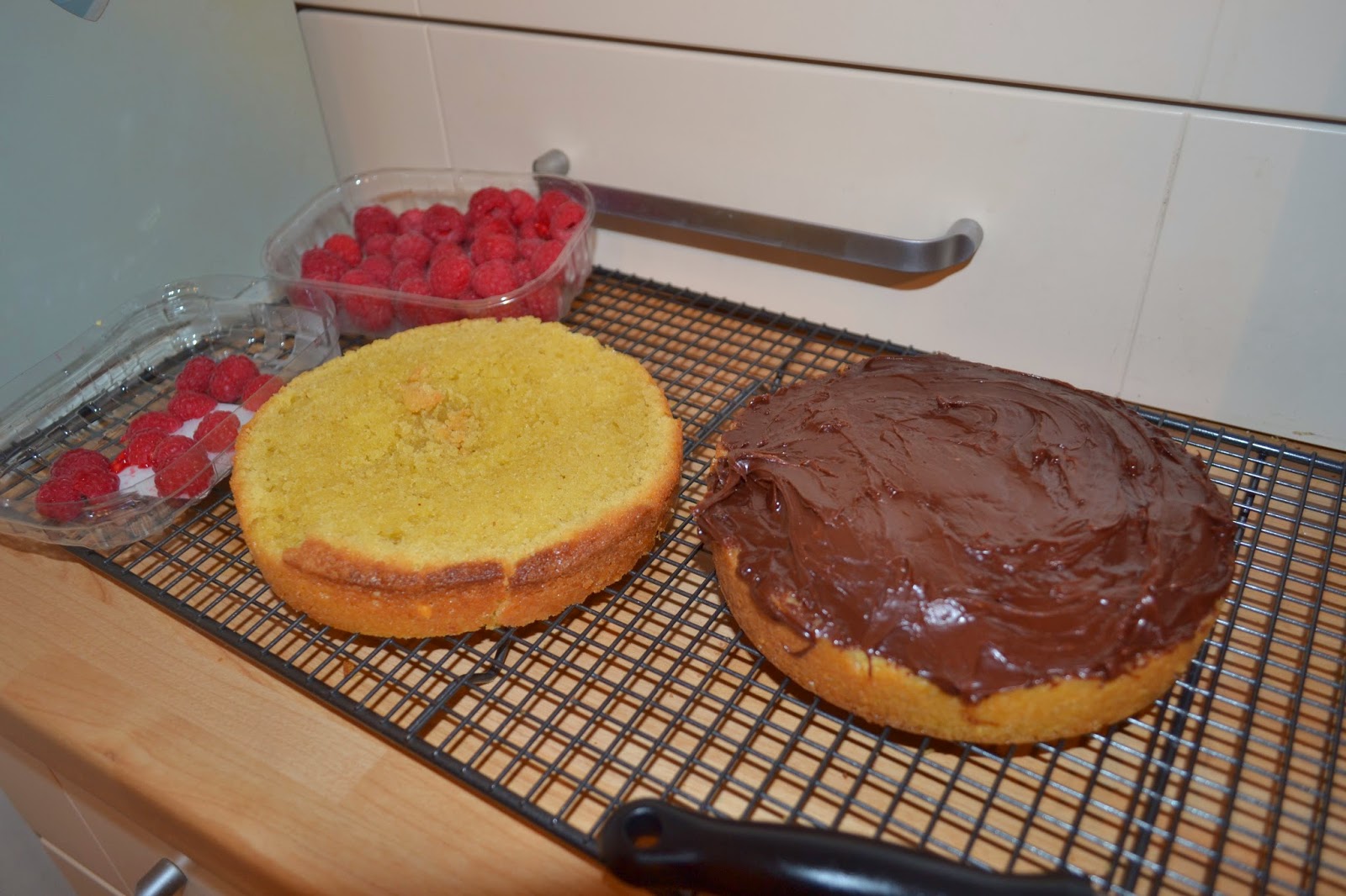 Topped with fresh raspberries bought from my local farm shop.Went on to doing my bottom cake-