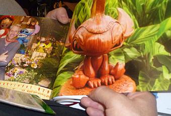 Mindstyle published a book of toys for a show in China. The first half of the book is devoted to FunKo Pop! toys shot with sexy, full-page glam photos. This is one of the other pages with an awesome wood-grained vinyl Stitch character.