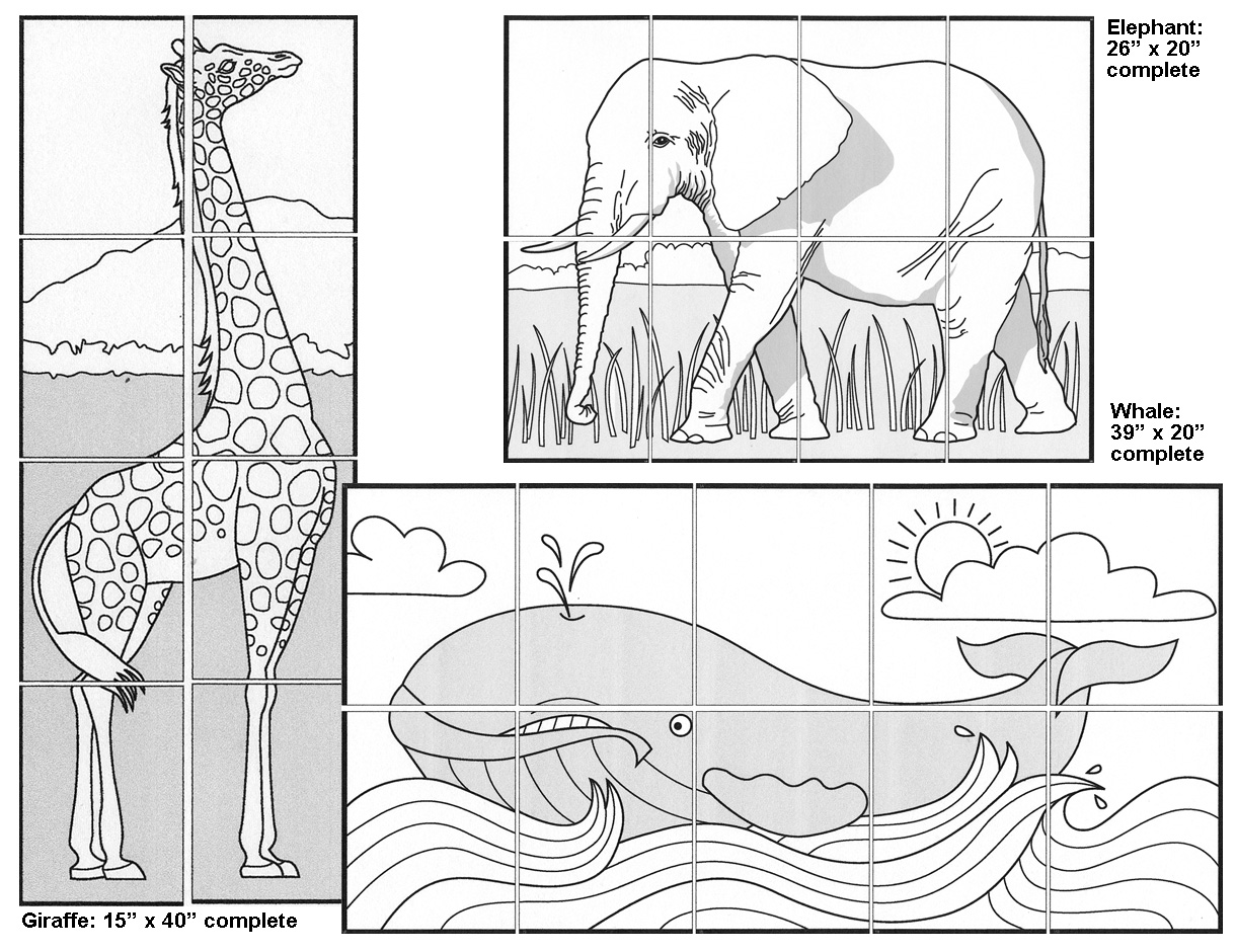 This mini mural set is made of a smaller version of each of my three large animals. I’ve included color guides for realistic results, or you can of course make up your own design. Click HERE to view the blank templates and finished dimensions.You can purchase my pdf file with instructions and color guide for just $5. Click the “Add to Cart” button to make your payment via Paypal and receive immediate download instructions. Warning: Download links will expire. Always save your pdf files immediately upon purchase.