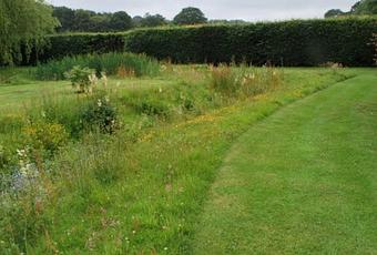 The meadow is to the left and the north lawn to the right