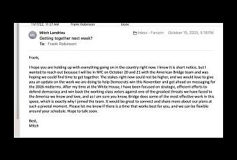 I had been thinking about composing an e-mail to Landrieu, urging him to run. (Not that I’m some macher.) Then, lo, comes an e-mail from him, saying he’ll be in New York and would like to get together!