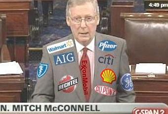 These tax breaks, known as “tax extenders,” largely benefit big corporations like General Electric, HP and Citigroup. The report finds that between January 2011 and September 2013, 1,359 unique lobbyists representing 373 companies and trade associations contacted members of Congress or their staff about the tax package…McConnell alone has received more than $100,000 in total from the top 10 companies who have lobbied most intensely…