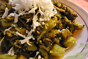 Though cooking this dish doesn’t take much of a time, the real challenge is chopping the mocha or the banana flower. A tedious job and nothing like it if you can get hold of a help to do it for you. But how much boring it might be, there will be no regrets regarding the outcome of the amazing preparation. It is so delectable that you can scarf up a whole plate of steamed rice with it.