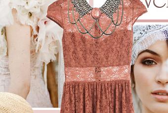 We found a Dannijo Misch Necklace that would accent the neckline above the cinnamon lace dress and a Lola bracelet that were of the similar color hues.