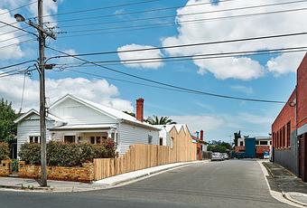 To shield an addition and new courtyard for a bungalow in greater Melbourne, architect Anthony Clarke fitted its facade with strips of rough-sawn Victorian ash. The new Victorian ash siding keeps the interior courtyard cool. Photo by Peter Bennetts.