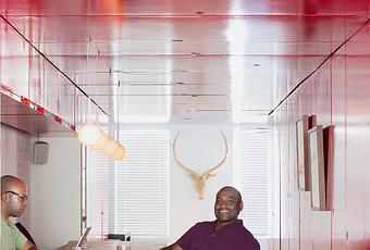 Formerly an unused dark hallway, LOT-EK and contractor Andreas Scholtz inserted a tunnel made from 36 reclaimed commercial doors, tore down a handful of walls, and painted the interior a glossy Safety Red paint by Benjamin Moore that "becomes a richer, darker, very relaxing red at night," resident Jorge Fontanez says. Photo by: Nicholas Calcott