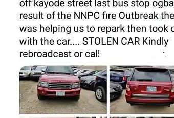 A man pretending to be a good Samaritan allegedly stole a car yesterday April 27, while helping to remove cars from a car dealership as fire gutted an NNPC petrol station at Ogba.