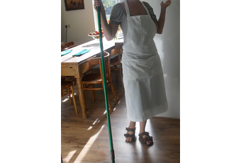 But now the kids are older, and the need to keep the floors clean has become less urgent. However, after a hot meal our kitchen floor still is quite messy. But it’s such a fuss to get my bucket, put water and cleaning stuff into it, and mop the floor.