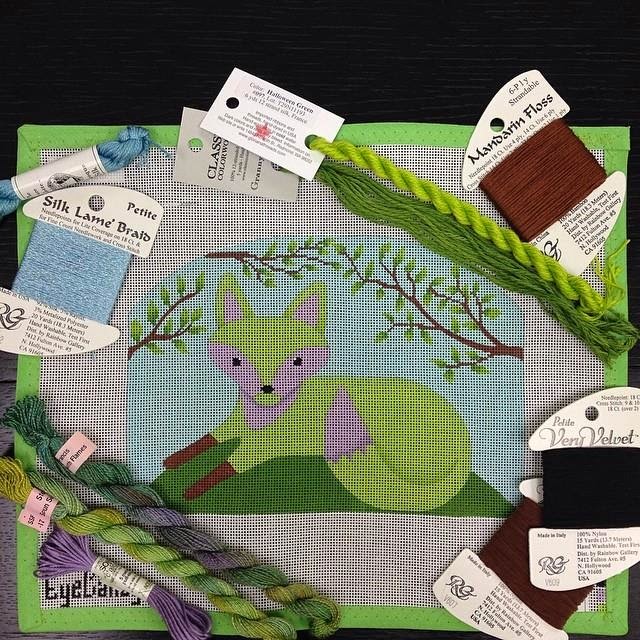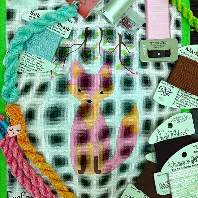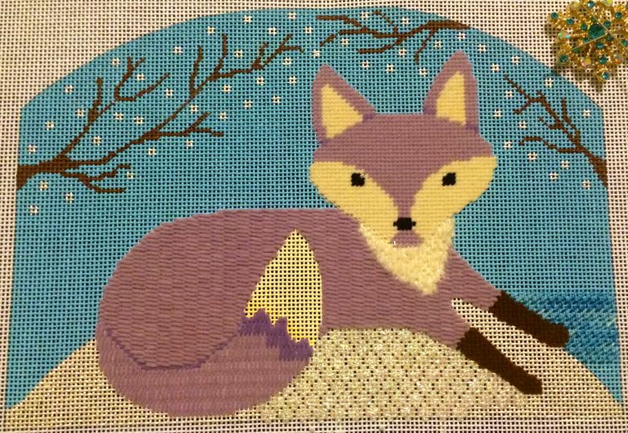 More gorgeous silks for this one, plus look at the silk ribbon/sequin combo for the flowers-- those will be gorgeous!Meanwhile, at least one person is already stitching up a storm on the Winter Fox-- this is Caroline's progress so far: