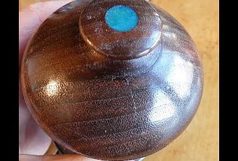 Black walnut box with turquoise resin inset.