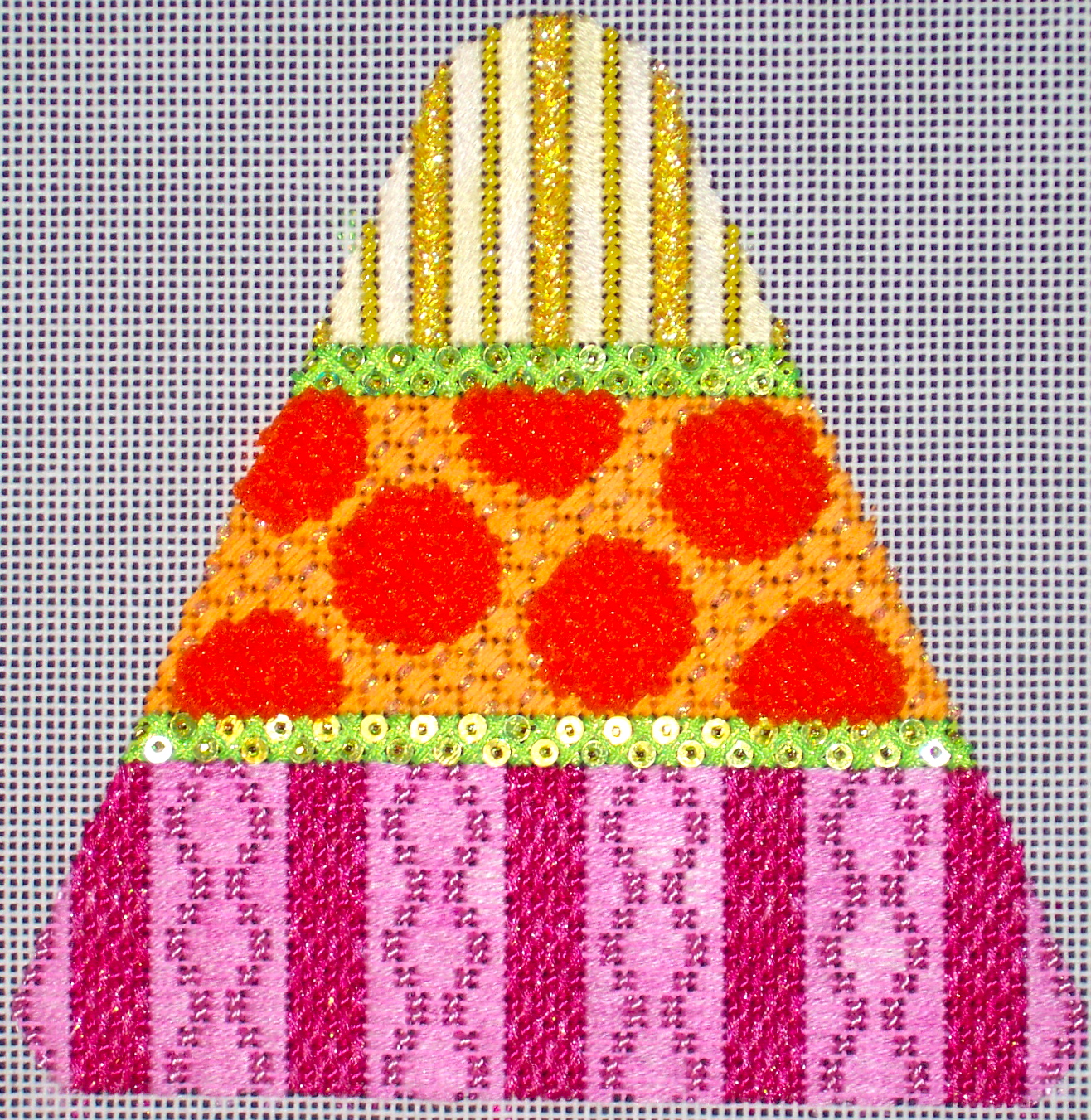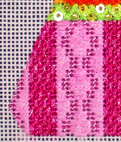 It doesn't show well here, but the dots in the center are highly textured. They are stitched in Loopy Basketweave, giving them a look almost like turkey work. Surprisingly, these dots used almost an entire card of thread, but the look is very rich!