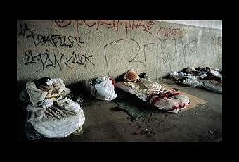 From this point on – when Macon makes it back to the homeless freaks is when the story really gets good with blood sucking, eye popping, head bashing, skin gouging gore!!