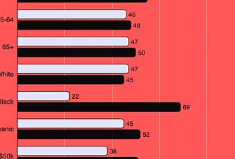 The chart above reflects the results of the Economist / YouGov Poll -- done between March 22nd and 25th of a nationwide sample of 1,600 adults (including 1,440 registered voters). The margin of error is 3.4 points for adults and 3.3 points for registered voters.