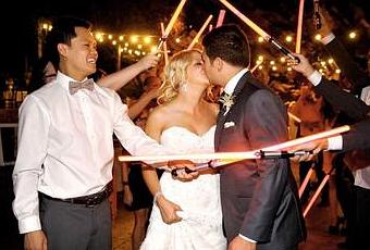 To end their special night, the pair nixed the traditional rice throwing send-off. Instead, family and friends created a bridge of light sabers for the newlyweds to walk though! The ideal end to a one-of-a-kind evening. Thanks to Cierra and Tyler for sharing their milestone with us!