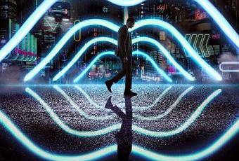 With , Jones goes for the cyberpunk technoir like Blade Runner , and from a production value angle, he nailed it. He creates a Blade Runner esque version of Berlin that feels real and lived in. He avoids the stark white, very sanitized Apple store version of the future for more neon soaked rainbows penetrating dark shadows. It's very reminiscent of classic noir, except instead of noen it was LCD/LED type lighting. There are still dirty and broken down areas and classic "artifacts" (for lack of a better word) from previous generations all over. On top of which, he captures a real gradient of upper class living to lower class, and how technology finds its way into either class, just at different degrees.