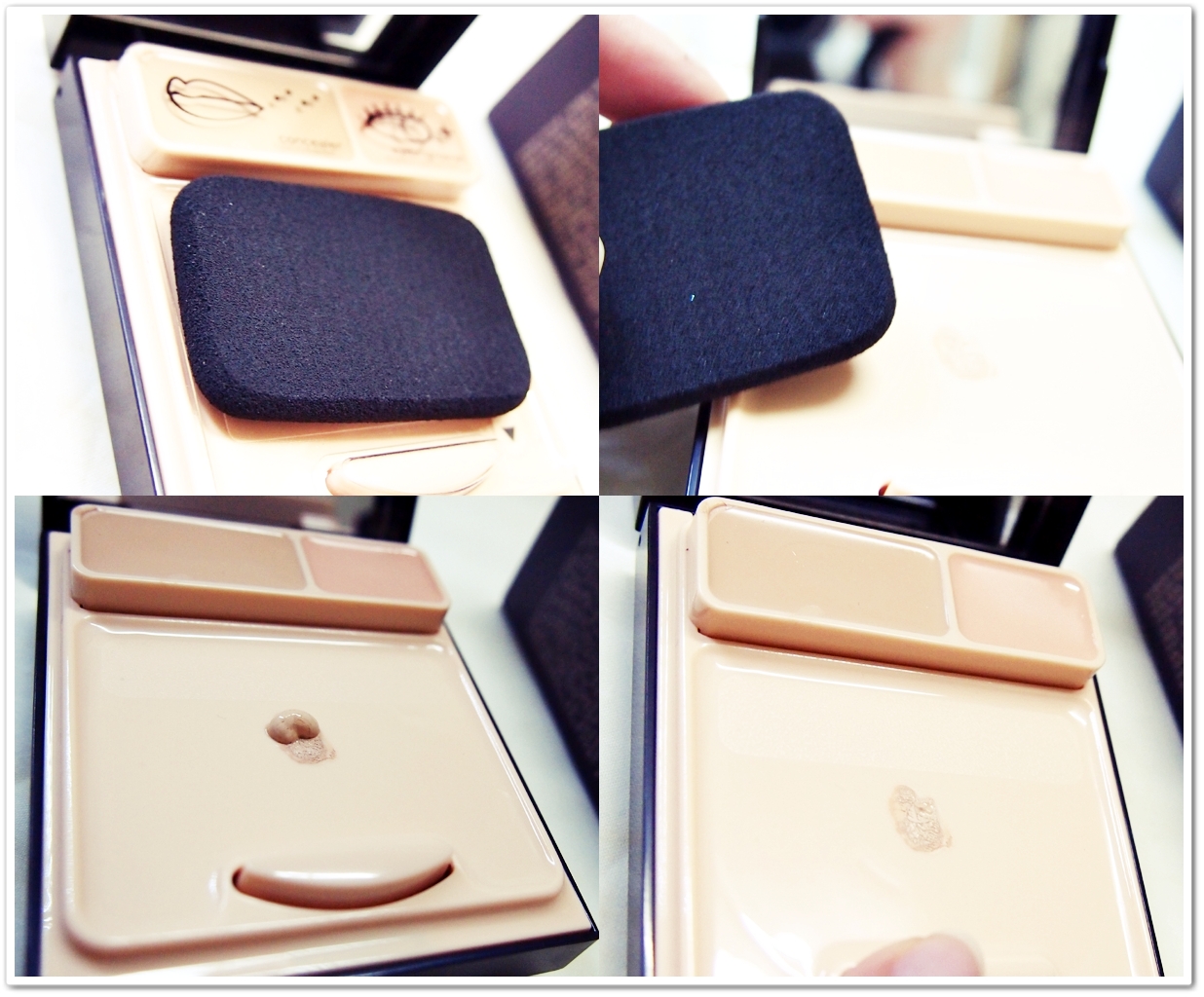 - Cream consistency concealer and eye brightener is located on top and a pressing button at the bottom is made available for the liquid foundation to flow on the tiny hole in the middle part.