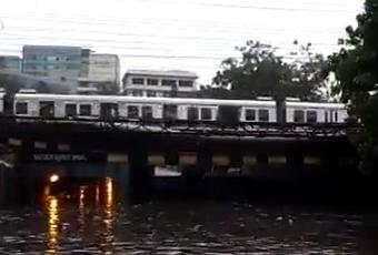 Maharashtra: Railway tracks submerged between Sion railway station & GTB Nagar railway station due to heavy rainfall in Mumbai.