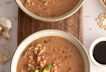 Mushroom and barley soup recipe with ginger, garlic and miso