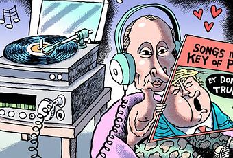 Music To Putin's EarsPolitical Cartoon is by Rob Rogers at Tinyview.com.