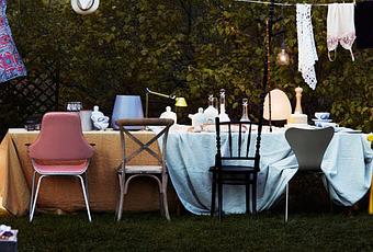 A product shoot that resembles a garden party featuring interesting chairs and accessories. Photo by: Pia Ulin