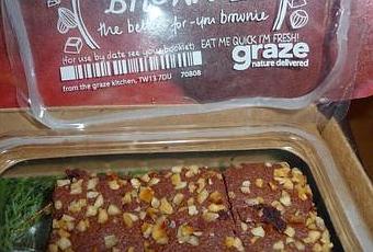 The graze brownie Well, I started first with the little bread sticks with the bbq relish , wow oh wow so nice and fab taste to them. The take on tomato & basil pizza was scrummy I did, especially like the cashews as they had a fantastic flavor to them. Only 70cals in the mini strawberries, blackcurrants and apple, good for in the morning. I have to say I do not normally like brownies as I find them too dry, but I can honestly say they were very nice and moist. Can't wait for my 3rd one :)