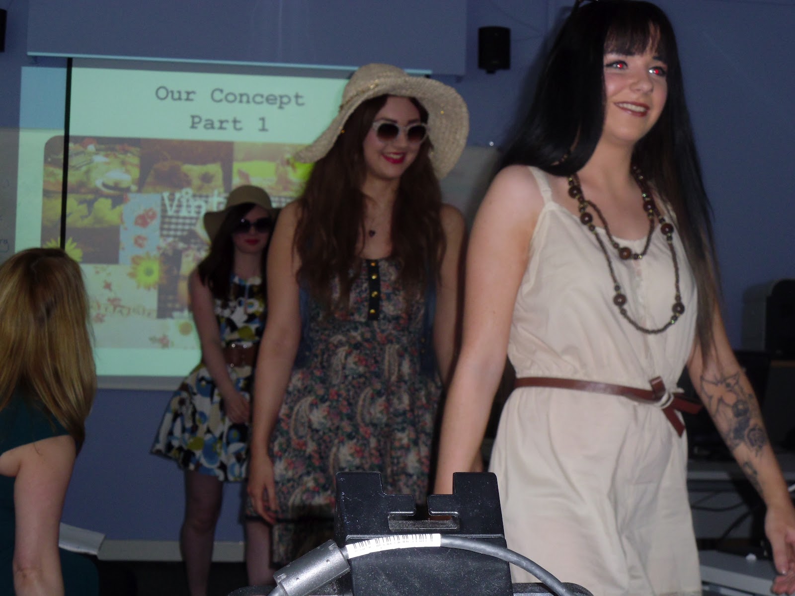 The Proposal I thought it would be nice to do a little post here to let you guy know about the end of year fashion show that I am currently involved in! So here is a post on the proposal that we did yesterday to secure funding! On Tuesday of this week (March 20th) both of our Fashion Merchandising classes at City of Glasgow College joined together to put together a proposal for the end of year Fashion Show to present to our Head of School - and sponsor - Robin McGee, as well as our Head of Department John Heuston and Jacquie Shaw. We elected four of our best girls; Paula, Sabrina, Louise and Patricia to present the proposal, whilst having another eight be our lovely models in Vintage day and evening wear to illustrate our vision for the fashion show.