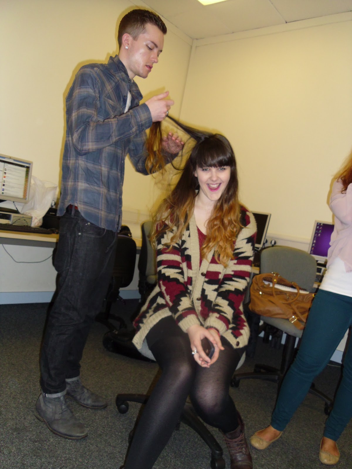 Kevin getting Jill's hair catwalk ready - Doesn't she look happy?!