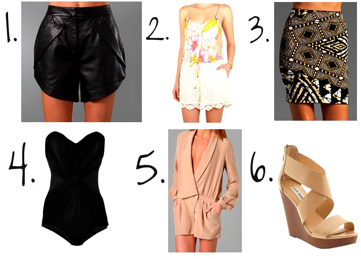 1. Alexander Wang Leather Mini Shorts with Lapel Pockets (get them at 30% off!) 2. Zimmermann Whisper Spliced Romper 3. BCBG Max Azria Tribal Print Double Jacquard Skirt in Black Combo 4. Zimmermann Orchid Twist Bandeau Swimsuit (now 65% off!) 5. Haute Hippie Long-Sleeved Romper 6. Steve Madden Riddgge Sandals (on sale!) (edited with polyvore and picnik)Above is a compact list of six things I would like to own right now. It came down to six items because I can't pick a favorite past these! I'm equally coveting them all. Today's shoe is the high-collared peep-toe in woven patent violet leather by Giuseppe Zanotti Design. While waiting for my aunt's manicure to be done today, I began reading InStyle's July issue, where I came across this page: