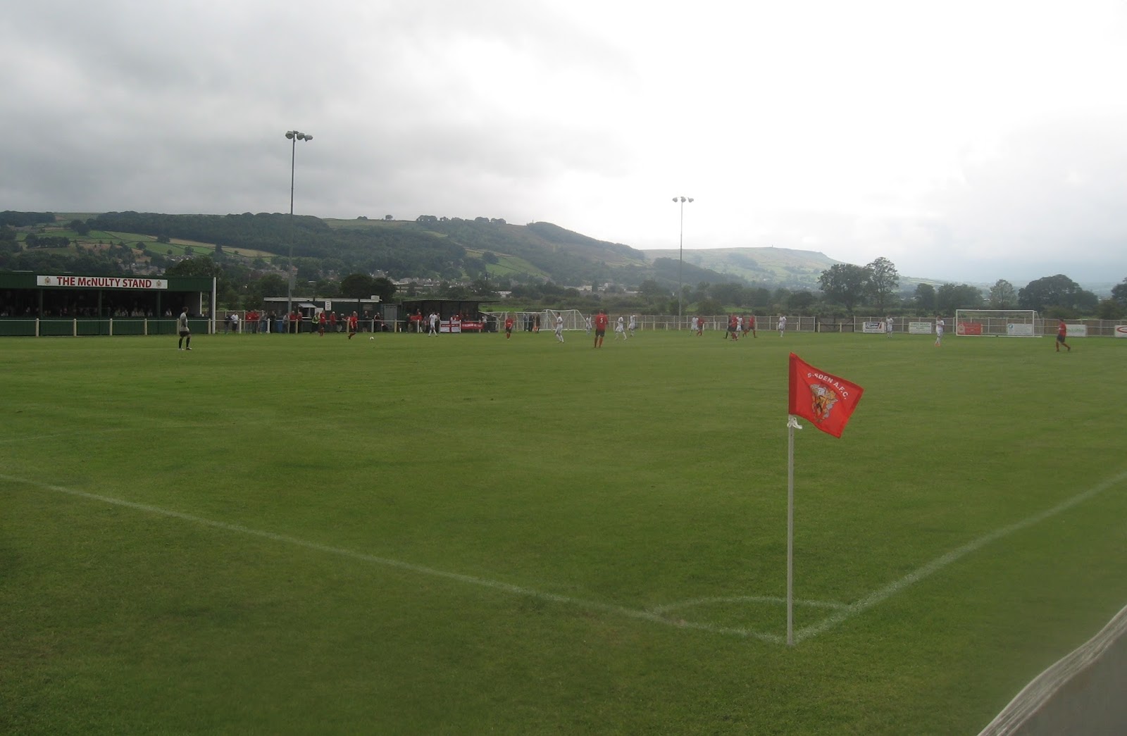 I arrived in Leeds just before 11am and started the morning browsing the city’s record stores, namely Jumbo Records, Crash and my personal favorite Relic found at the top of New Briggate. Once the clock hit noon it was time for my ‘Spoons tour to start, beginning at the ‘Stick or Twist’ followed by ‘Hedley Verity’ ‘Cuthbert Brodrick’ and finally ‘Beckett’s Bank’ with the first pub providing the best pint of the day – Ilkley’ Summer’(4%) which I awarded 9/10. After a decent bevvy I caught the 1356 Skipton train, alighting at Steeton & Silsden station, which is about half a mile from the ground, found on the other side of the River Aire. Silsden is mentioned in the Domesday Book as Siglesdene, where it was noted as the most important village in Craven. The town is a civil parish on the northern slope of the Aire Valley in West Yorkshire. The Leeds and Liverpool canal runs along the lower edge of the town, which provided trade during the Industrial Revolution, although generally Silsden is an agricultural area and a former mill town.