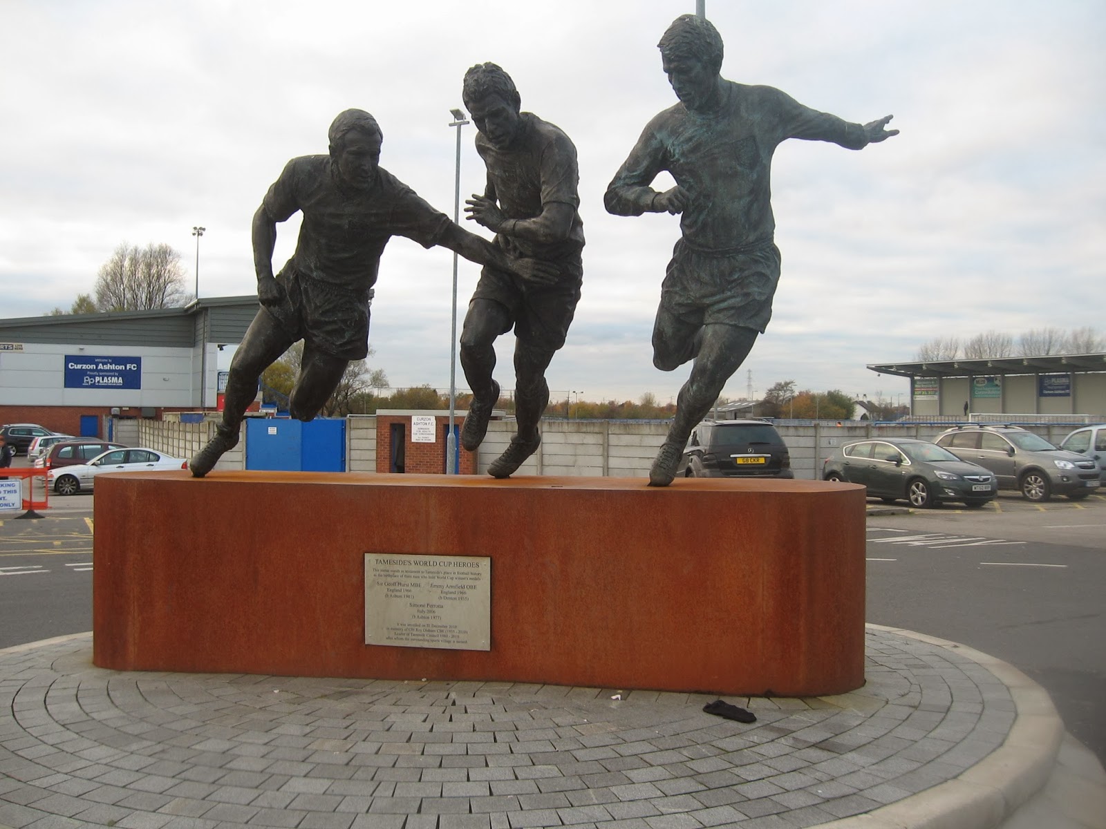 Curzon Ashton moved to the Tameside Stadium for the start of season 2005/06, the ground formally opened by Sir Alex Ferguson before a game against a Manchester United XI on the 8th September.On the approach to the stadium there’s a statue commemorating three local football legends – Denton born Jimmy Armfield with World Cup winner Geoff Hurst and 2006 Italian World Cup star Simone Perottta, who were both born in Ashton.