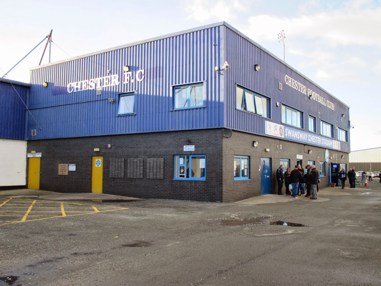 The site on Bumpers Lane was part of an industrial estate which lead to a council tip by the banks of the River Dee. Construction of the new stadium began in January 1992 and on completion seven months later, became the first English football stadium to fulfill the safety recommendations set out from the Taylor Report. The ground falls over the Welsh border with the car park and the offices at the main entrance in England.