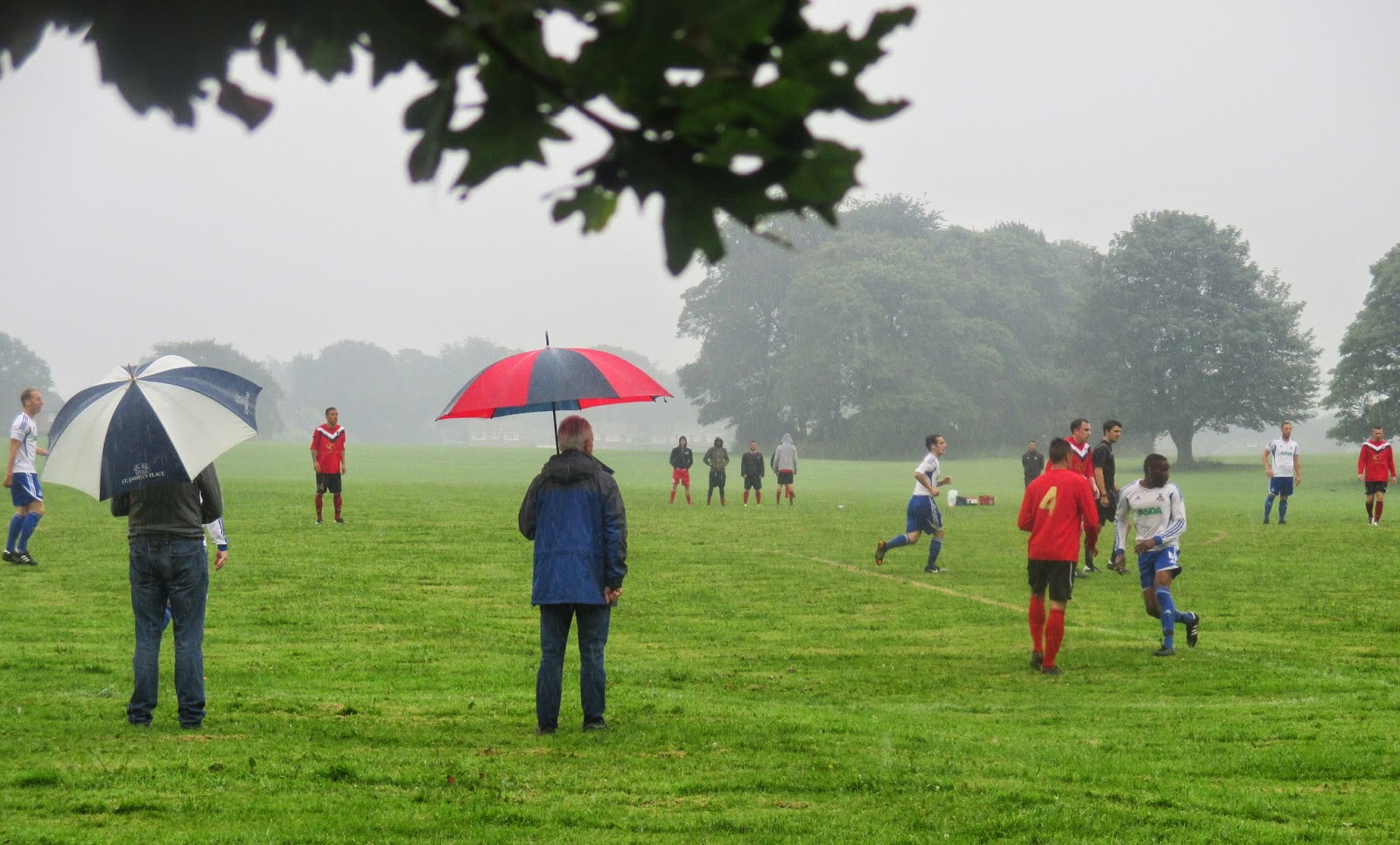 The MatchLeeds City faced Oldham based Springhead AFC who play in the Manchester Football League. I took shelter under a tree from the heavy downpour and witnessed an entertaining game. The visitors took the lead after a quarter of an hour when Fagan was on hand to fire in a right wing cross from 12 yards, but City replied twenty minutes later when trialist Johnny Wilson netted the rebound after the ‘keeper parried a long range effort. On the stroke of half time Springhead regained the advantage when Leighton Stephenson managed to stay onside before firing home a first time strike from twenty yards.