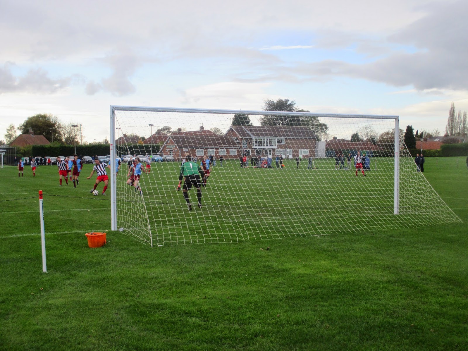 I made an early start in York so I could do the City Academy game in the morning before this match at Osbaldwick later in the afternoon. My first port of call was the Punch Bowl for a ‘Spoons breakfast, but the combination of a lack of urgency by the staff and plenty of hungry punters meant I abandoned the pub and heading to the bus stop. The number 40 bus was due at 1005 and as its an hourly service, I had to catch it or miss out, however the terminus at Exhibition Square didn’t show any signs of this bus actually stopping there, so I boarded another bus, jumped off and caught the bus at a later stop. I asked the driver to give me a shout at the Moor Farm stop, but he hadn't heard of it and seemed puzzled by my request, so he dropped me off after the roundabout on Wigginton Road. I started walking looking for the ground, I kept..walking..and walking and eventually running. This wouldn’t normally be a problem for a seasoned runner like myself, but when you're fully clothed and wearing size 10 Dr Marten boots, its bliddy hard work!The B1363 road was neverending, my quest not helped by no pavements and cars tear-arseing past at 60-70 mph and as I later found out, the bus had dropped me off just over 2 miles away. To cut a long story short I arrived at the Wiggington Road Training Ground soaked in sweat, just in time to hear the referee's whistle start the game, but not before arriving at a mystery football ground, running through a farmers field, having to dodge past a massive turkey(whose days are numbered) and nearly throwing up due to the incredibly strong stench of manure in the air.