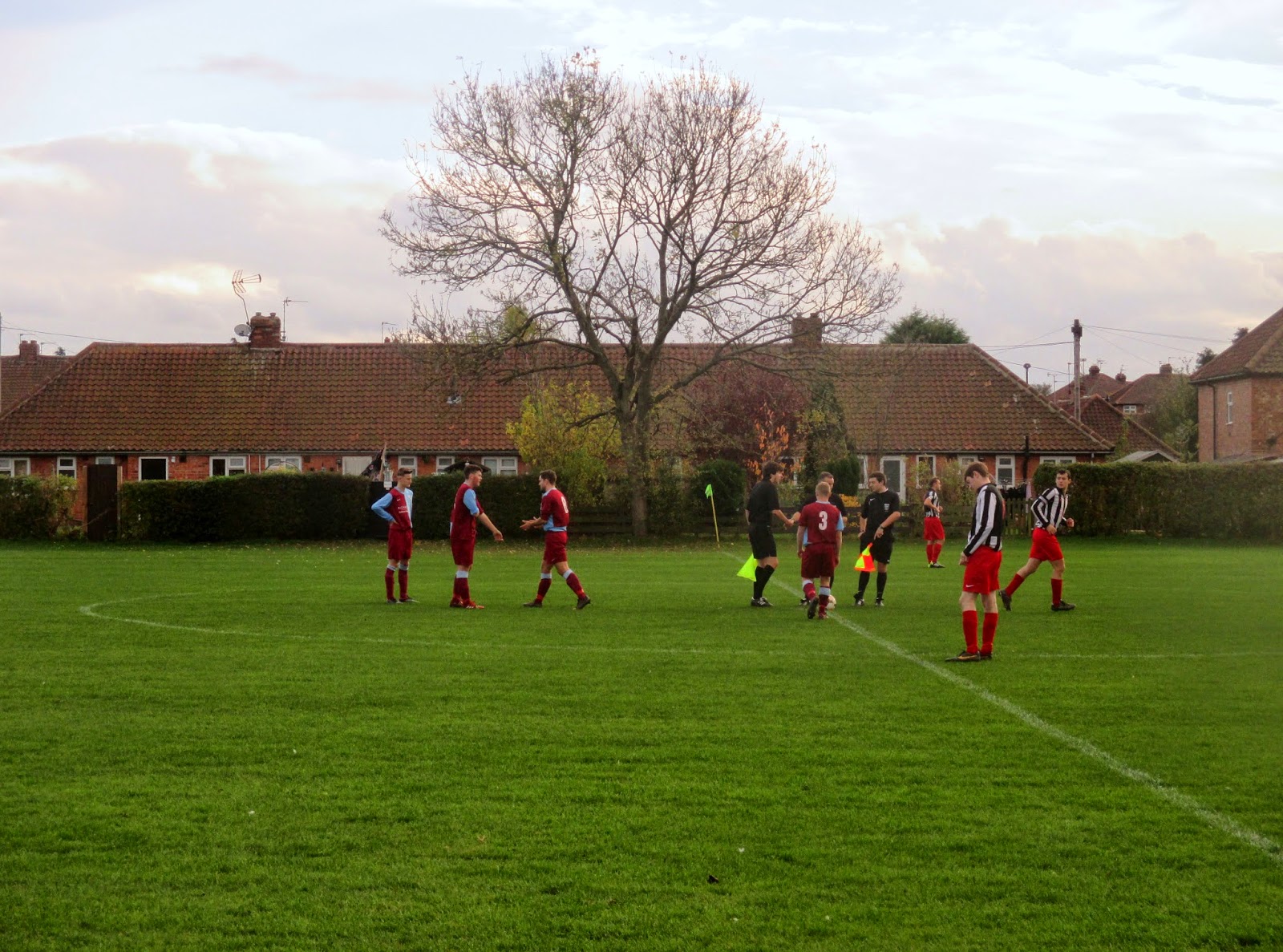 The bus to Osbaldwick was spot on. I walked down to Piccadilly where the number 8 service was just pulling in and within 10 minutes I arrived on Hull Road, then it was a 5 minute walk through the housing estate to The Leyes. On arrival I was disappointed to find the Osbaldwick Sports Club closed because I was naturally choking for a pint and after missing breakfast I still hadn’t been fed. The ground is shared with the cricket club so the football pitch is at the near side in front of the car park. The pitch is roped off with temporary tent style dugouts at the side. Just before kick off there was around half a dozen of us waiting for the game to start, I was beginning to think that this could be my smallest attendance, beating the 8 at Heaton Stannington in 2007, but once the match got under way there was about 50 in attendance which swelled to over 70 when I did the half an hour headcount.