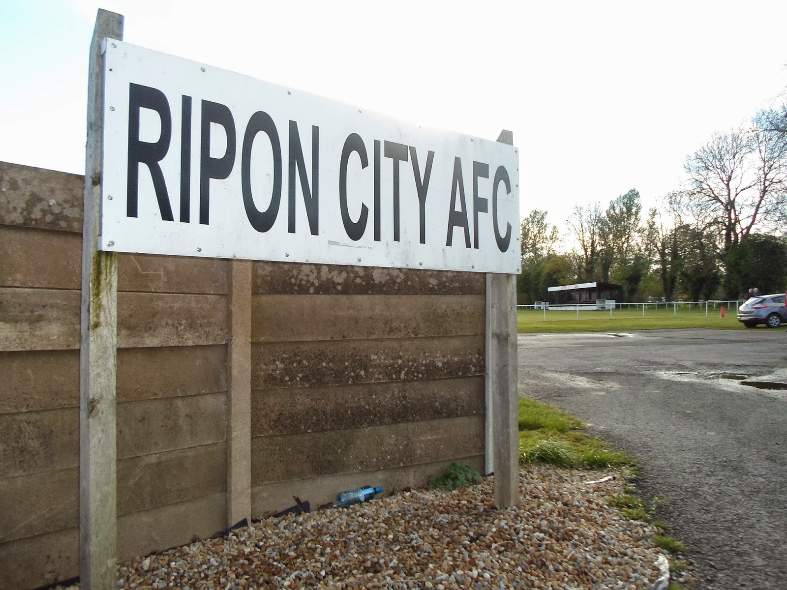 A football club in Ripon was first established in 1898, but it was after the First World War that the town’s two existing teams Ripon United and Ripon City merged, becoming Ripon City AFC. The new club immediately made improvements to their Malorie Park home by erecting a new stand. The 95 year old stand is still sitting on the halfway line, fitted with five rows of bench seats, with the club name proudly marked out in red on the roof facade. At the front of the stand on each side are the brick dugouts, which are painted white. The clubhouse which was built in 1977 is at the entrance facing the car park, with the team changing rooms in a separate building at the back. The pitch is railed off on all sides with no hard standing.