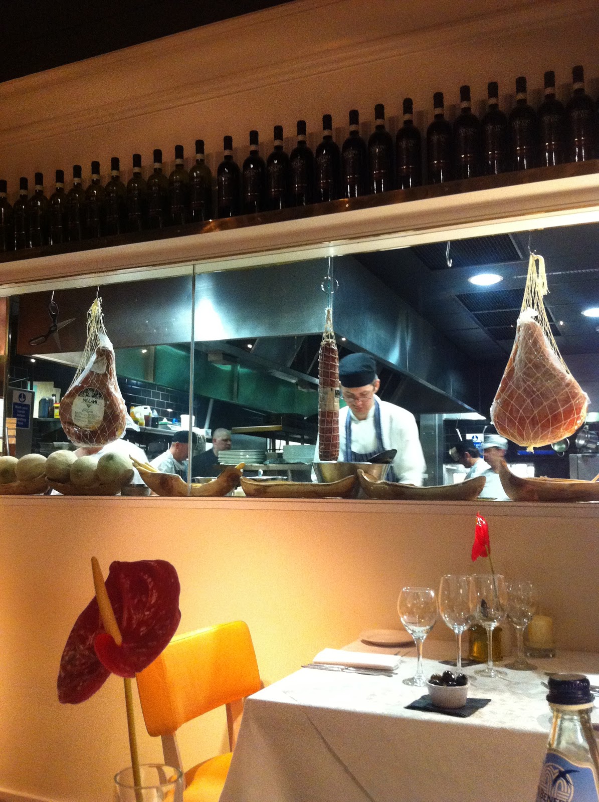We went out for a lovely dinner on Sunday, and had a wonderful seat near the kitchen. They were behind glass, like goldfish. And I don't like Anthurium.