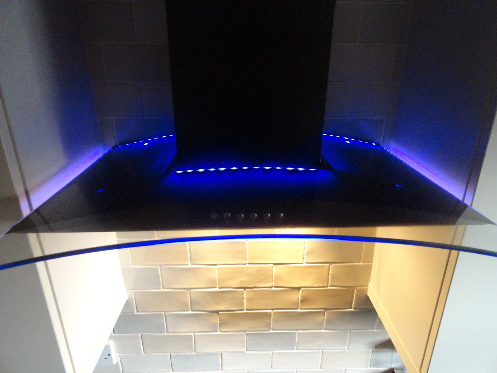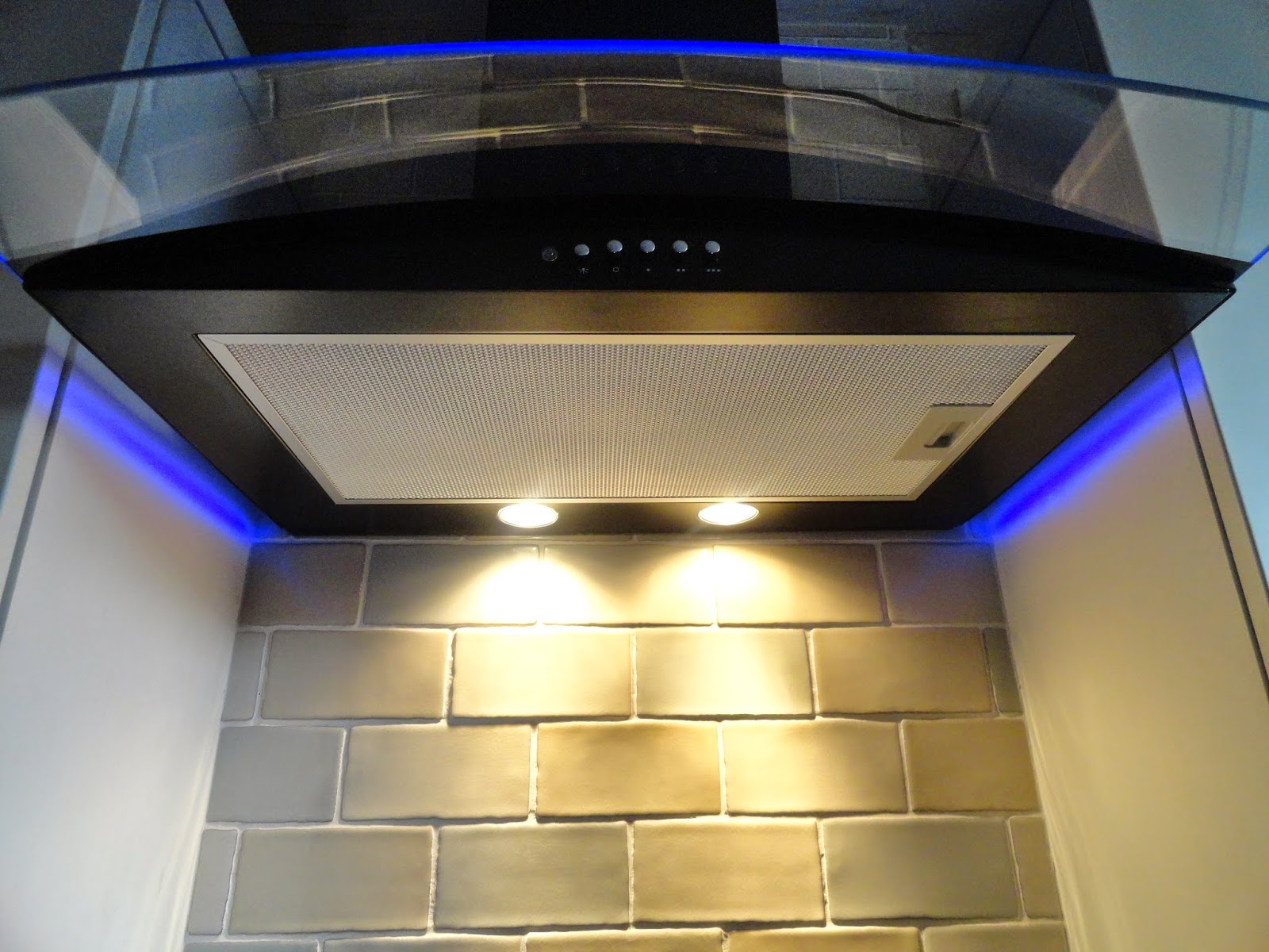 And then MyAppliance.co.uk contacted me and asked me to review one item from their website, and I choose the ART28317 60CM HOOD LED CURVED GLASS,from out of 100 different models of cooker hoods that are available on their website, with prices starting from as little as £44.99, this hood was exactly what I had wanted, a Black steel chimney, with LED Illuminated curved glass - costing £98.99.After having it installed, I can safely say I much prefer my brand new black LED glass hood, to that of the old popular/boring stainless hood, and with the added feature of the blue LED glass, it is simply stunning and sets a rich atmosphere. In addition, the rear halogen bulbs really set the effect off and makes a beautiful setting over the cooker.