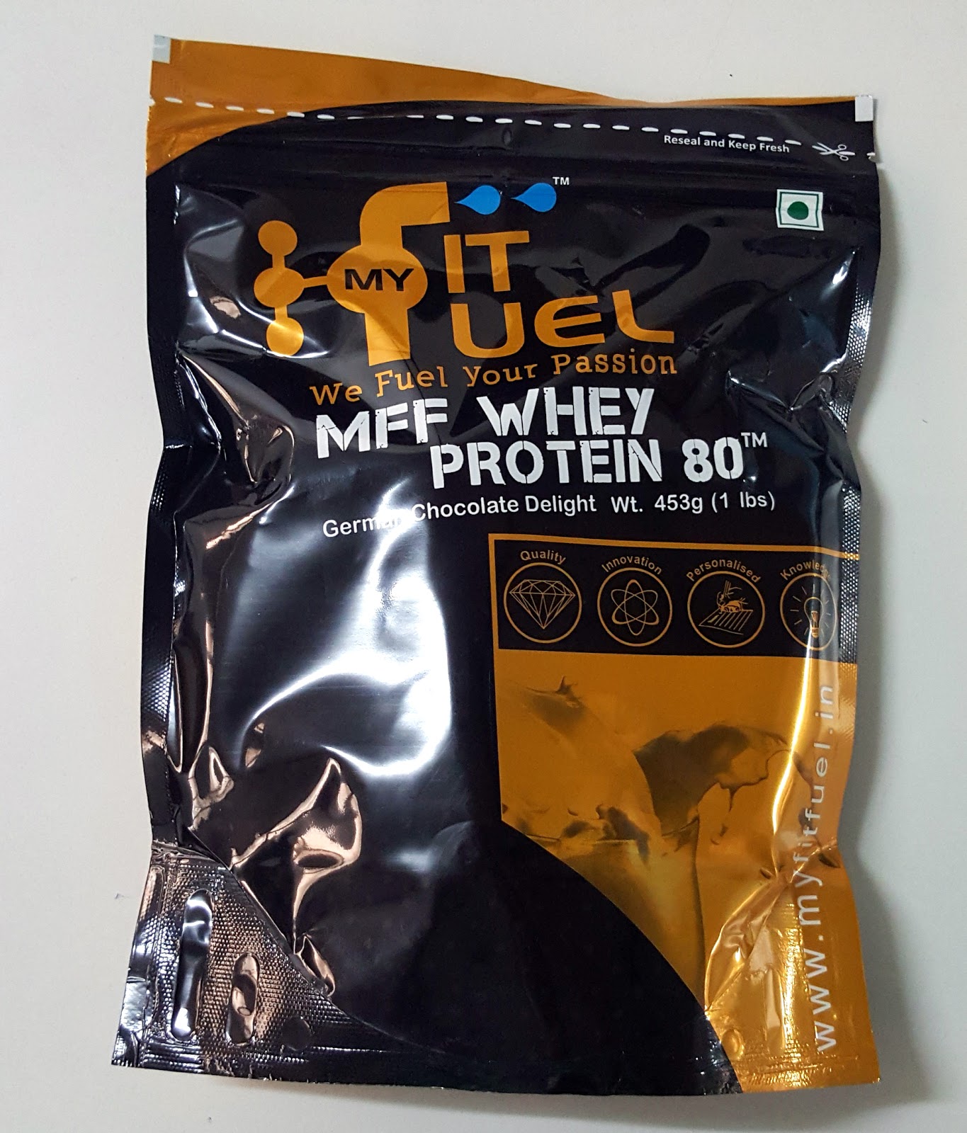 My view on MyFitFuel Whey Protein 80This comes in a sturdy and resealable packaging. The taste is sweet and can be taken with either milk or water. The powder gets mixed quite easily without any lumps. You also get a shaker along that’s quite useful to get an excellent texture.While I compared the price of MyFitFuel Whey Protein 80 with other nutrient brands in the market, this one is quite economical. MFF is an Indian brand and thus no huge shipping and transportation cost has to be paid unlike the ones of international brands.You can also buy this Whey Protein from MFF in different flavors. The powder quality is awesome and actually helps in curbing hunger. Make sure you don’t increase the mentioned intake/ dosage.