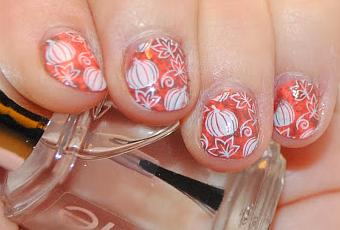For this look started with a base of Hazard (Orange) and then added the brown (Nirvana) using the Saran Wrap Method. Once that was dry I stamped overtop of it all with this cute image from the Bundle Monster Holiday Collection. We both thought that these were perfect nails for the fall season. Sometimes people with short nails are worried that the full nail images on stamping plates won't look right, but as you can see here a design like this would look great on nails of all sizes!