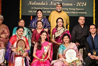 Nalanda Nrityotsava 2024, celebrated the academic excellence awards for the students who topped the University of Mumbai courses from Foundation, Bachelors, Masters to PhD levels at the hands of the Awardees for promoting Indian arts and nurturing youth talent.