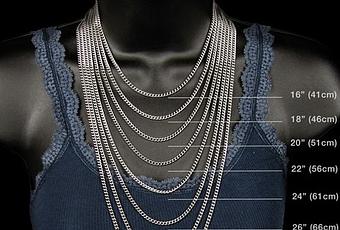 - 16 inches is just a bit longer than the previous one and rests on the neck. A necklace of that size is usually visible when worn with any clothing even if it has a collar